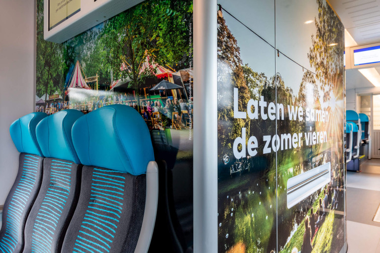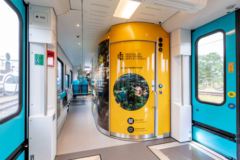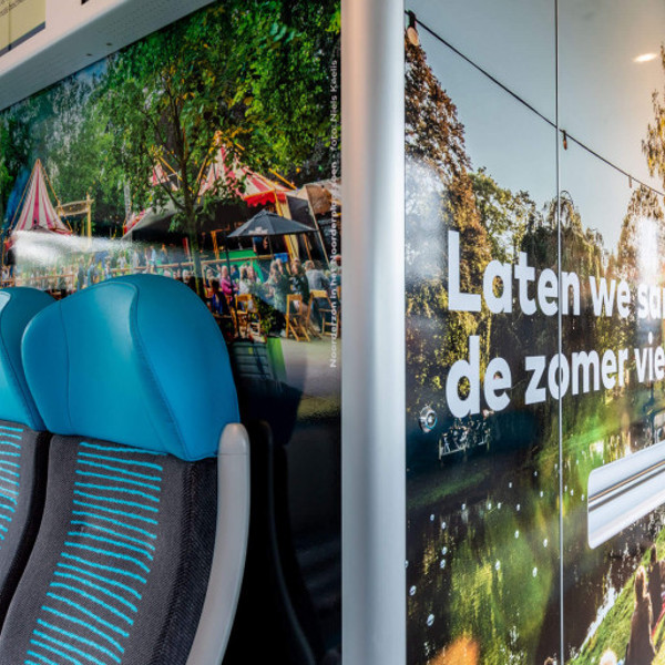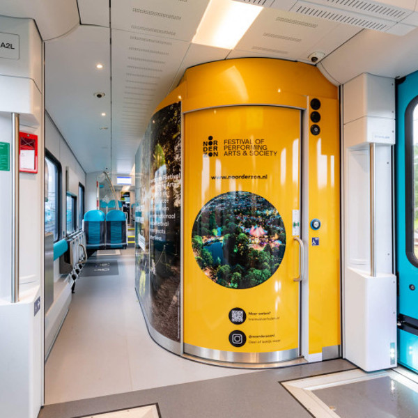 Stap ook in met een dagkaartIn deze trein krijg je heel even het gevoel alsof je in de Groningse binnenstad bent voor Noorderzon.
