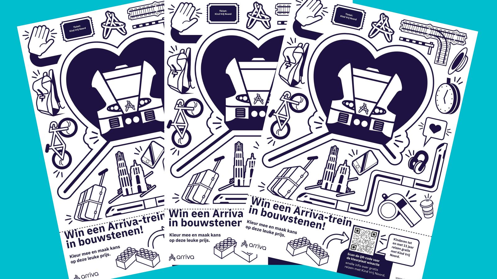 Heb jij in de trein een kleurplaat gekregen en deze mooi ingekleurd? Dan maak jij misschien wel kans op een Arriva‑trein in bouwstenen! Deel jouw tekening en wie weet ben jij de gelukkige winnaar.