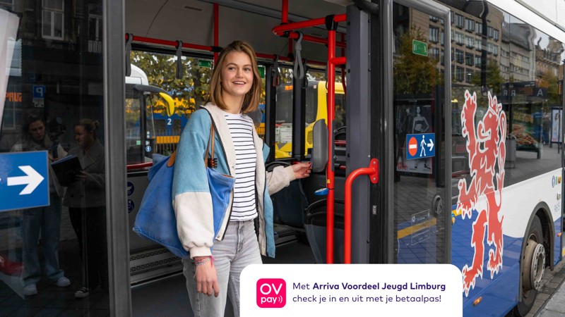 Arriva maakt reizen met de betaalpas en de nieuwe OV-pas voor jongeren van 12 tot en met 18 jaar nog aantrekkelijker. Met Voordeel Jeugd Limburg reis je voordelig met alle Arriva bussen en treinen in Limburg. Hoe meer je reist, hoe meer korting je krijgt. Als je vanaf €10 per maand reist, krijg je 10% korting. Daarna loopt de korting steeds verder op. En bereik je €50,- aan reiskosten in een maand? Dan reis je de rest van die maand helemaal gratis.